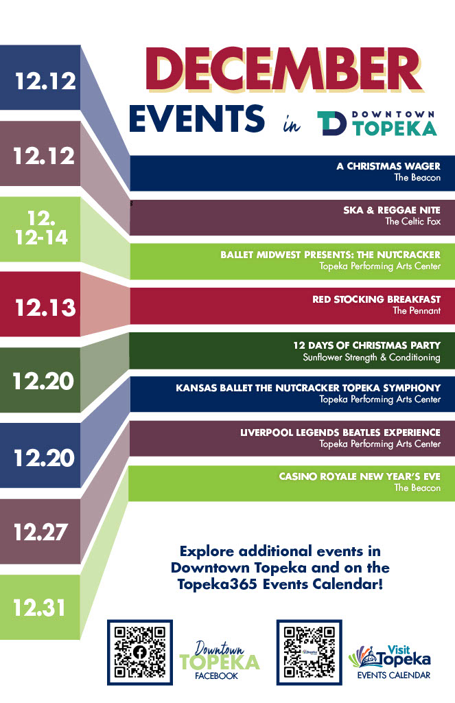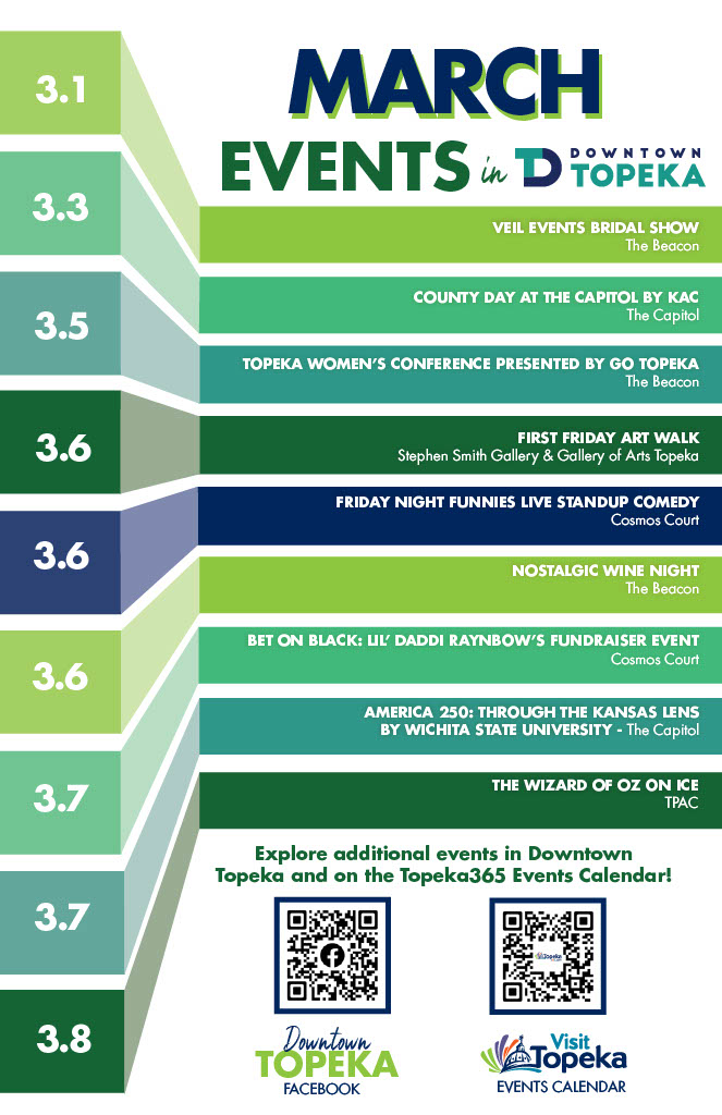 Downtown Topeka is alive with energy all year long, offering a vibrant mix of events every month! From outdoor recreation and family-friendly fun to live music, stand-up comedy, and cultural festivals that celebrate our community’s rich diversity—there’s always something exciting happening. Stay in the know so you don’t miss a moment of the action in the heart of the capital city!